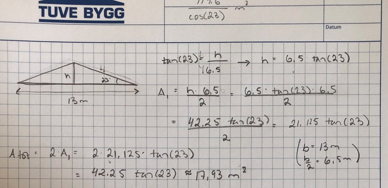Nej, längden på taket är på andra ledden. Det som står i figuren är bredden.