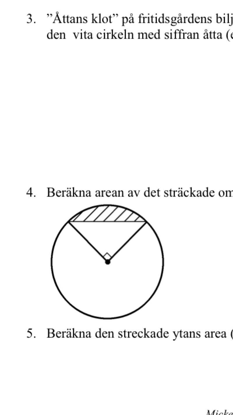 (Up 4) det jag kommit fram 90/360*33^2*3,14 för att ta reda arean av triangeln men vidare kommer jag inte