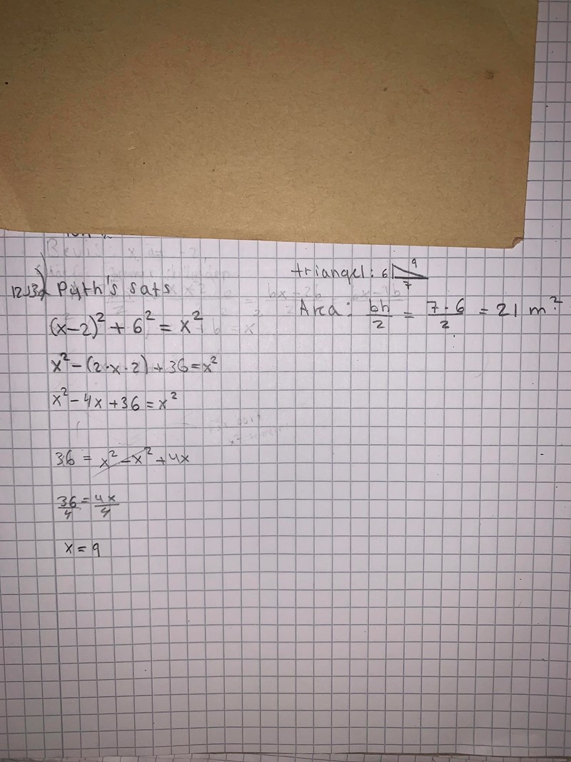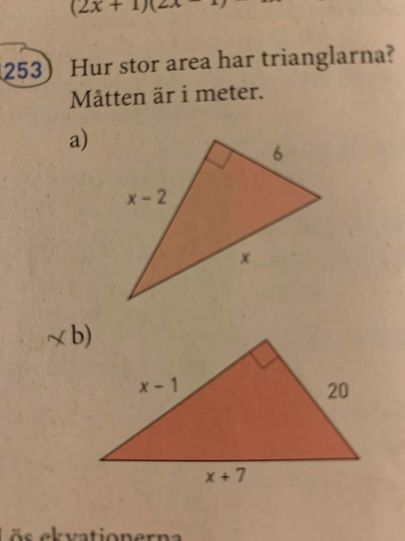 Såhär gjorde jag, blev area 21 m^2 och x=9Facit säger att arean är 24 m^2 och att x=10 m. Vad har jag gjort fel? 🥺