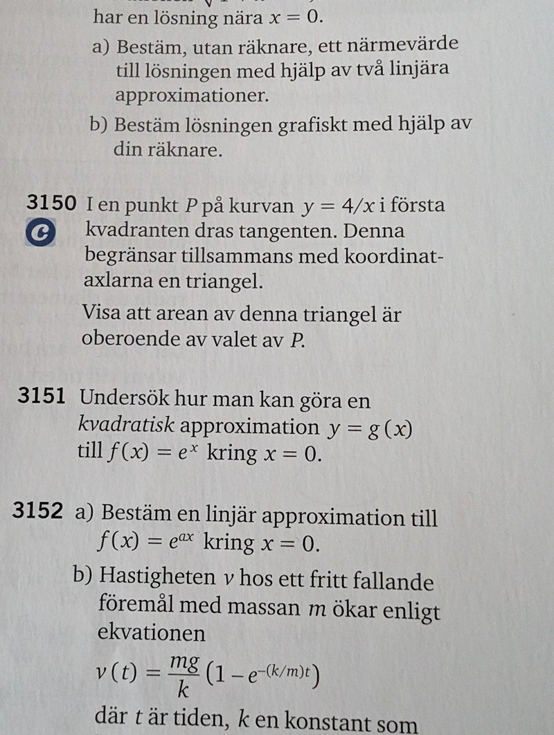 Vill ha lite vägledning på fråga 3150. Jag har tagit derivatan av funktionen. Så långt har jag kommit XD