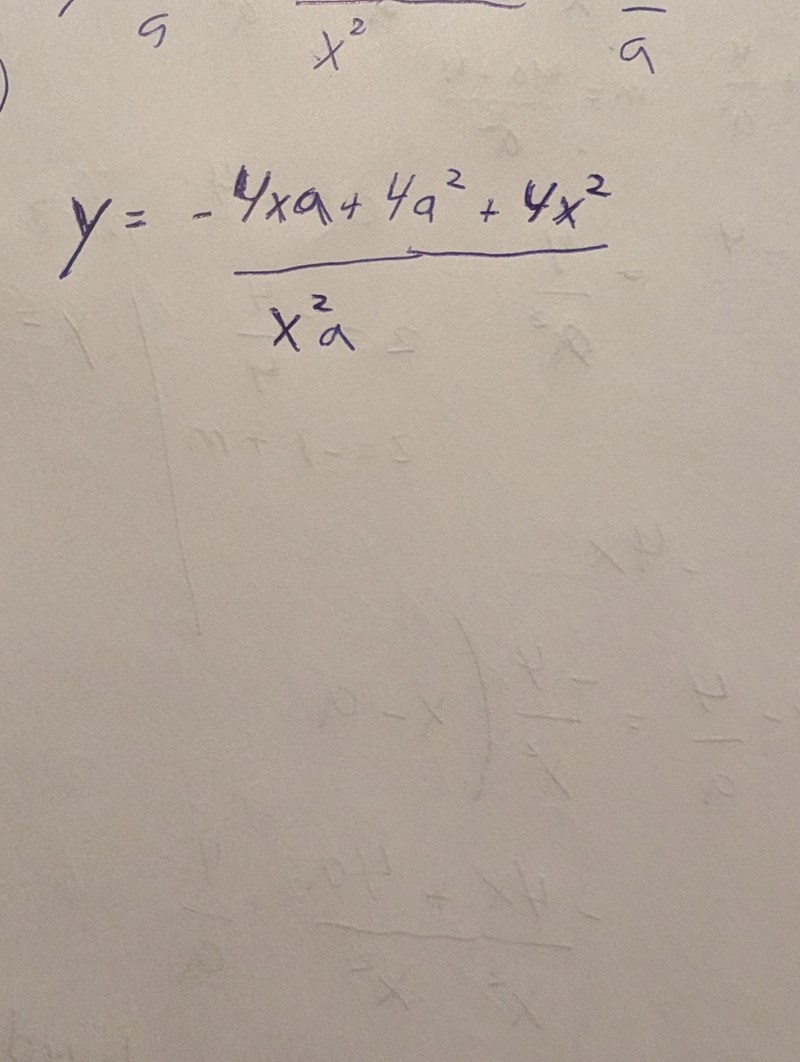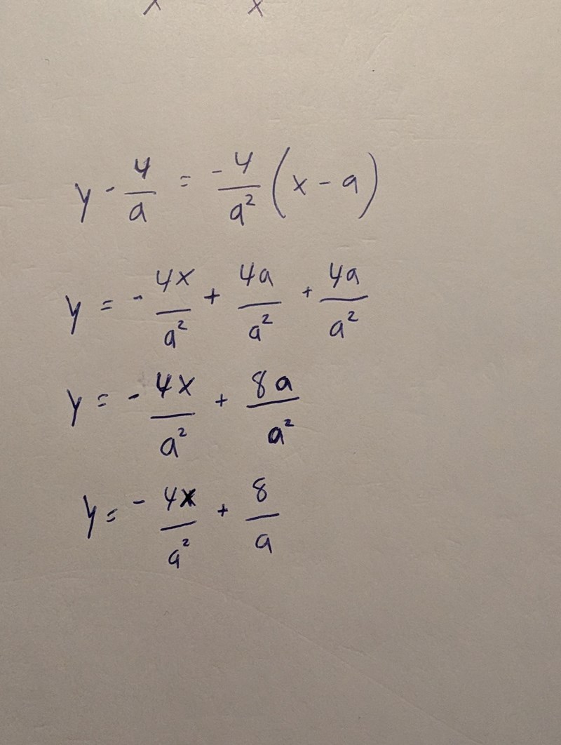 Jag kommer fram till det här, lite annat än y = -(4x/a^2) + m