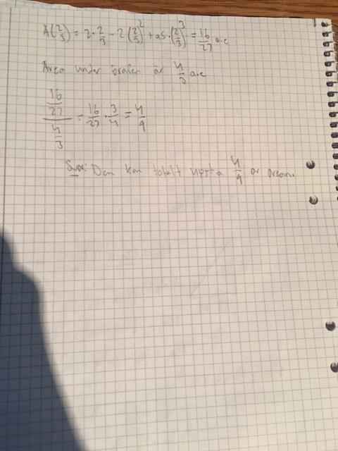 a) Beräkna arean under mellan kurvan och x-axeln svara exakt!
