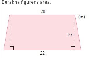 Du har tre delar i figuren och arean är summan av de tre delarna. I mitten har du en rektangel med bredden 20 och höjden 10.