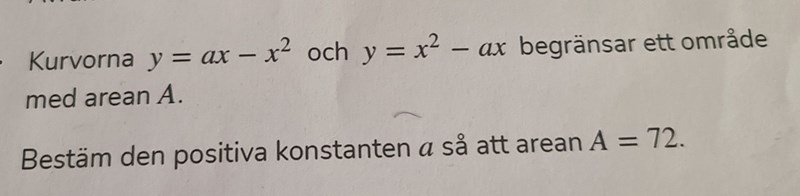 jag vet hur man räknar ut arean mellan två kurvor, men vet inte hur jag ska börja. Någon som kan hjälpa mig