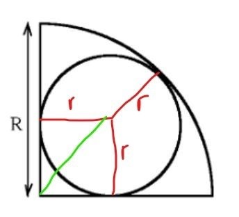 jag ska lösa en uppgift där man ska räkna ut arean av en cirkel som är inritad i en kvartscirkel med radien R.