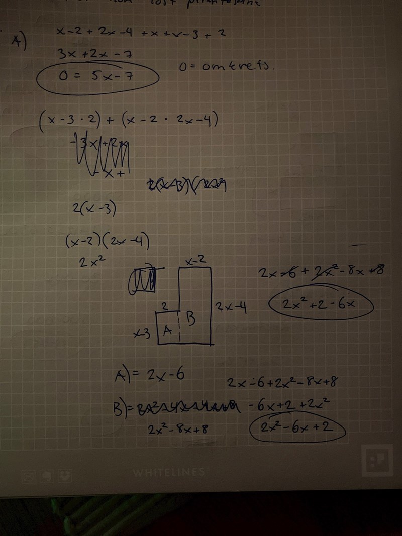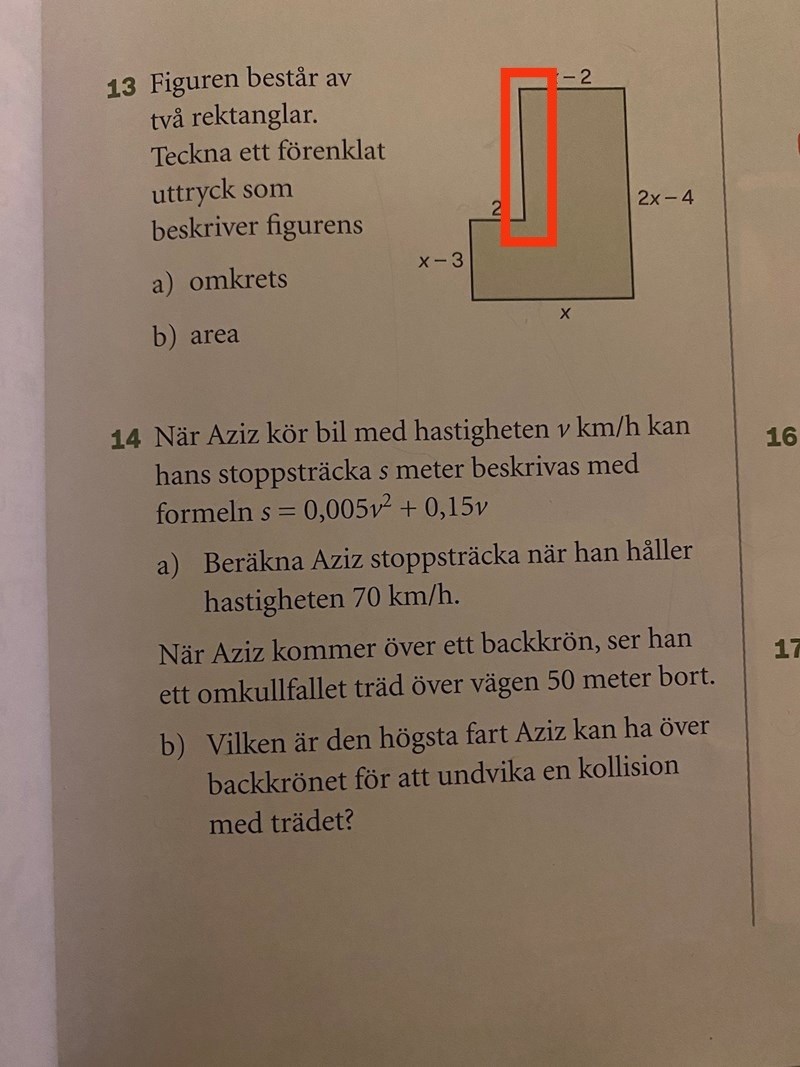 Du kan se att den sidan tillsammans med den som är (x-3) tillsammans är lika långa som den till höger (2x-4).