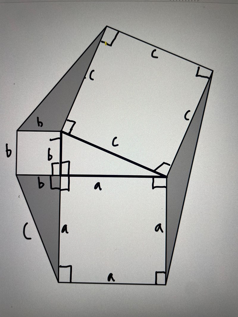 Den högra triangeln har en sida som är a och höjden (med den sidan som bas) är b eftersom den triangel som bildas av de röda linjerna höger tillsammans med en sida c ovan är kongruent med den nedre vänstra.