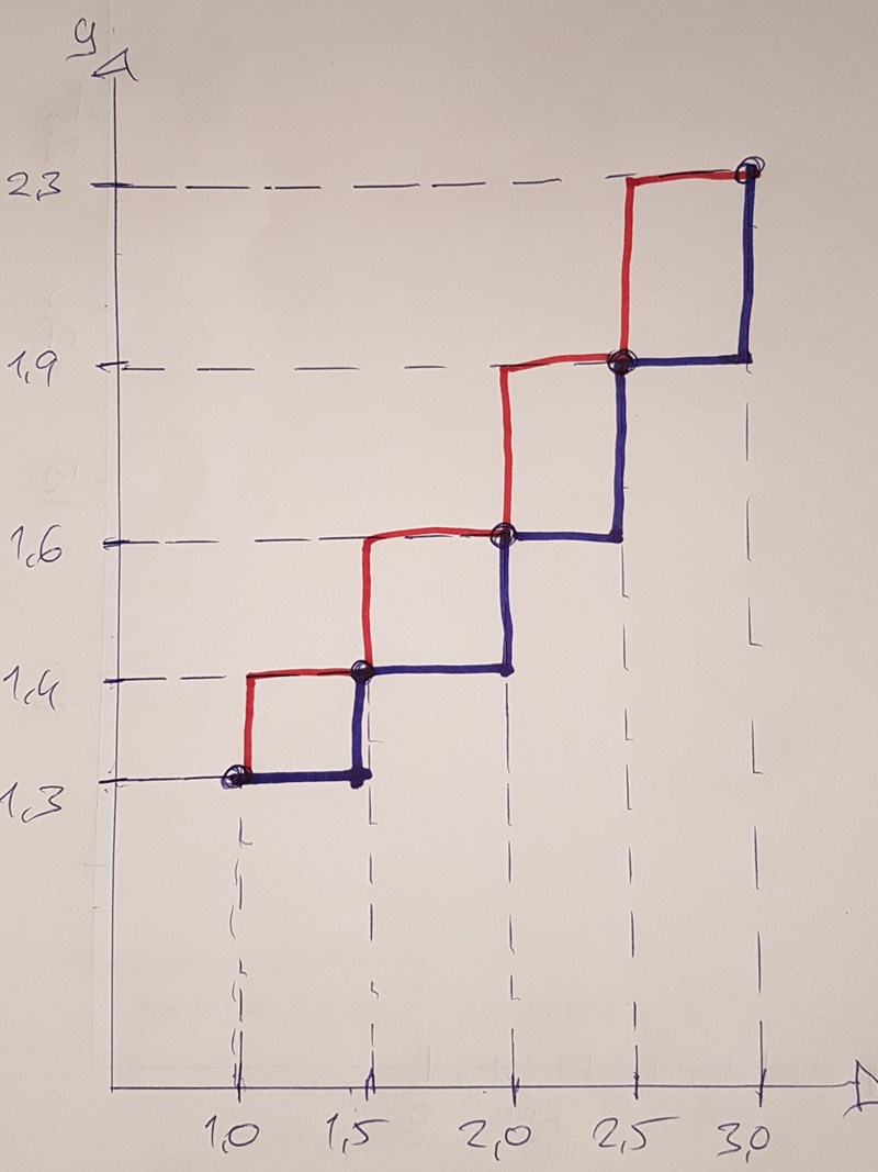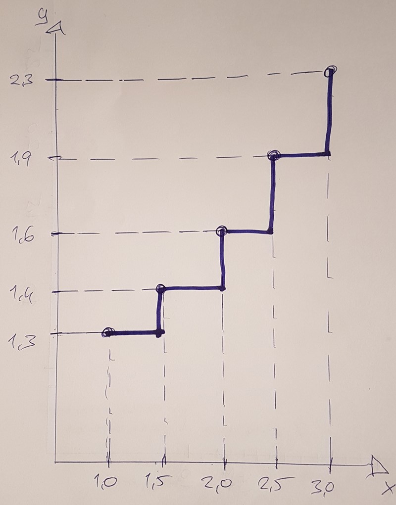 Förbind punkterna med en graf som ligger så lågt som möjligt, men där det hela tiden gälmer att funktionen är växande: