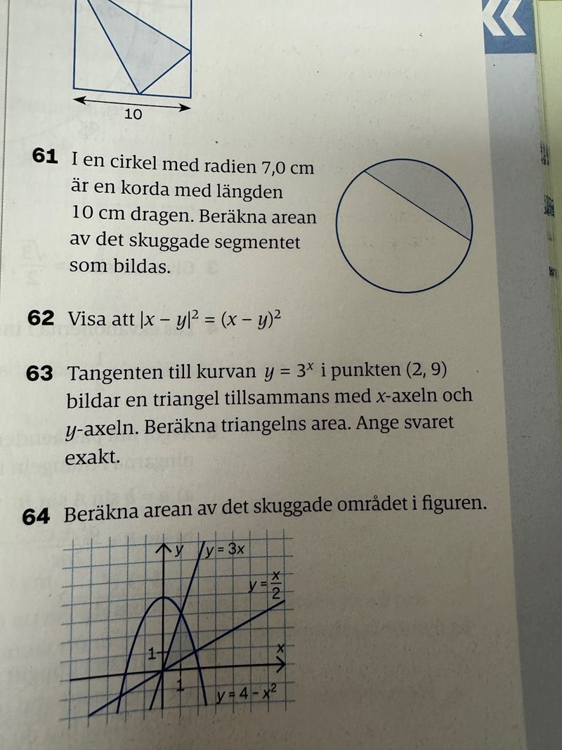 Uppgift 63. Det känns som att jag har gjort helt rätt. Jag har även kontroll räknat. Men jag fattar inte varför jag får ett fel svar.
