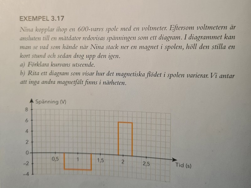 Har läroboken definierat vad man menar med magnetisk flöde genom en spole på något annat sätt än definitionen som används i b-uppgiften, någonannanstans?