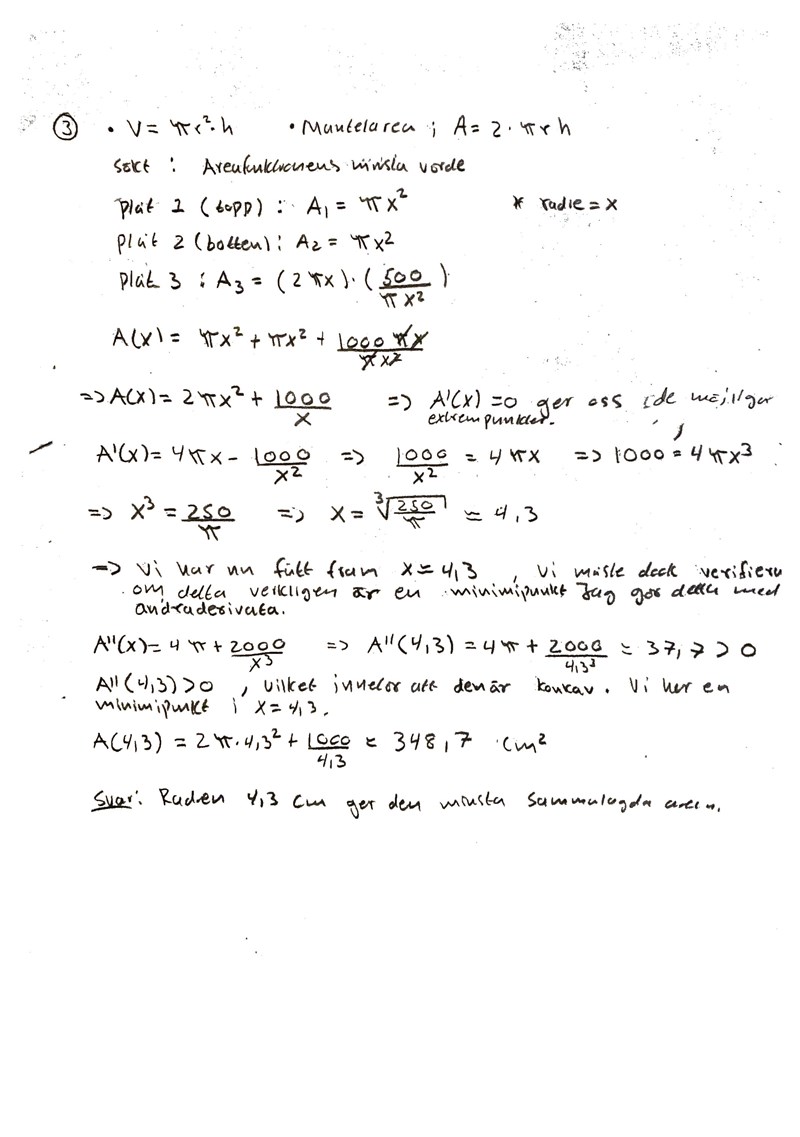 Hej, jag har gjort en uppgift där facit saknas så jag undrade om någon kunde vara schysst och kontrollera min lösning. Notera att jag inser att jag skrivit att funktionen är konkav i x=4,3, jag menade dock att skriva konvex. Uppskattar hjälpen!