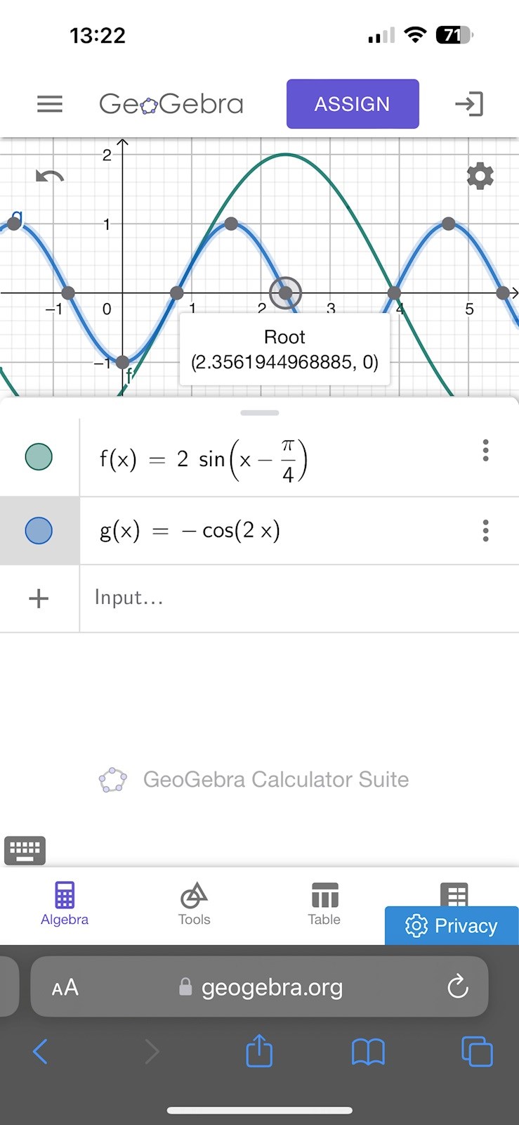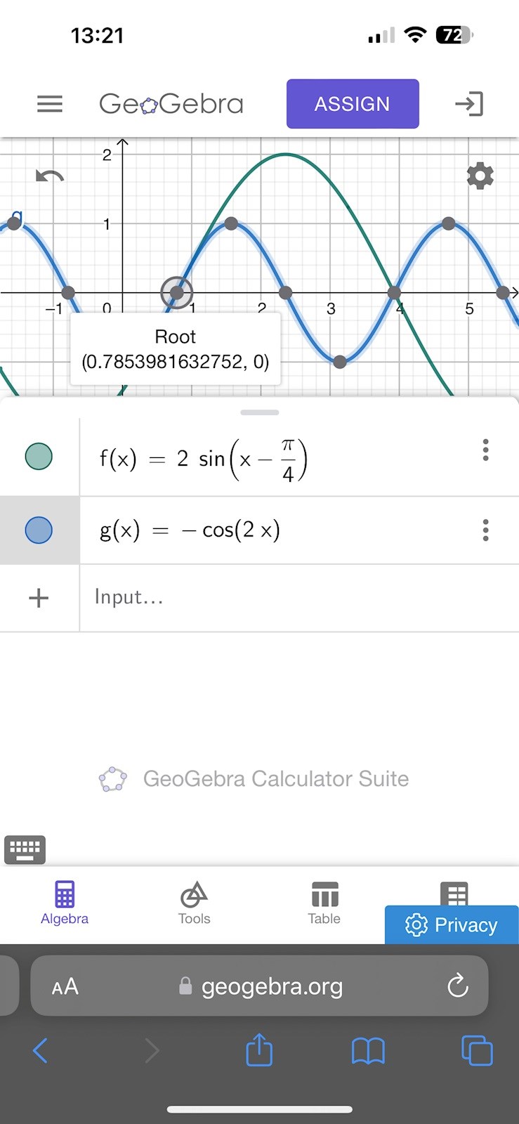 Är 2sin ((x)-(pi/4)) den röda grafen i bilden?