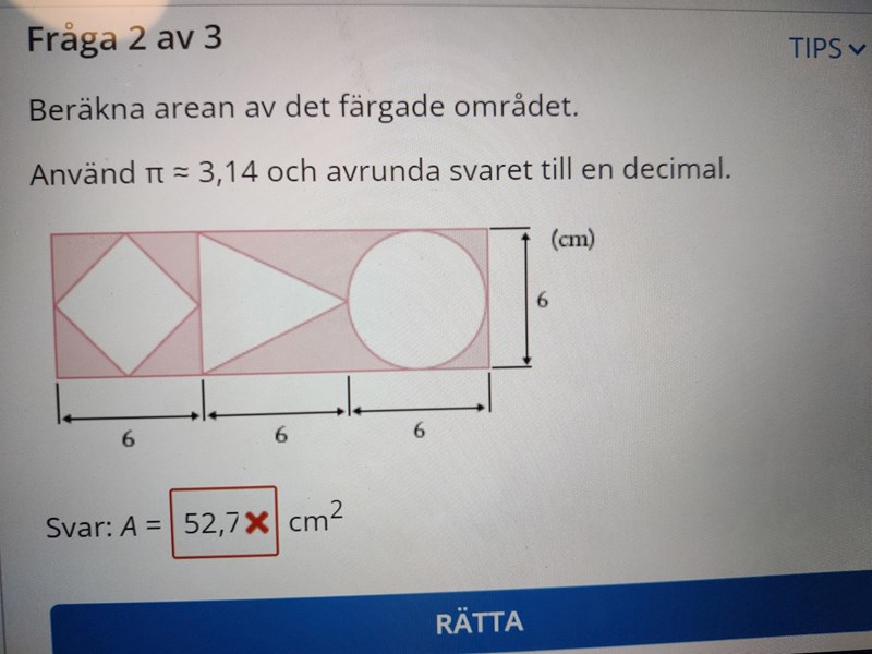Kolla igen om kvadratens sida är 3 cm.