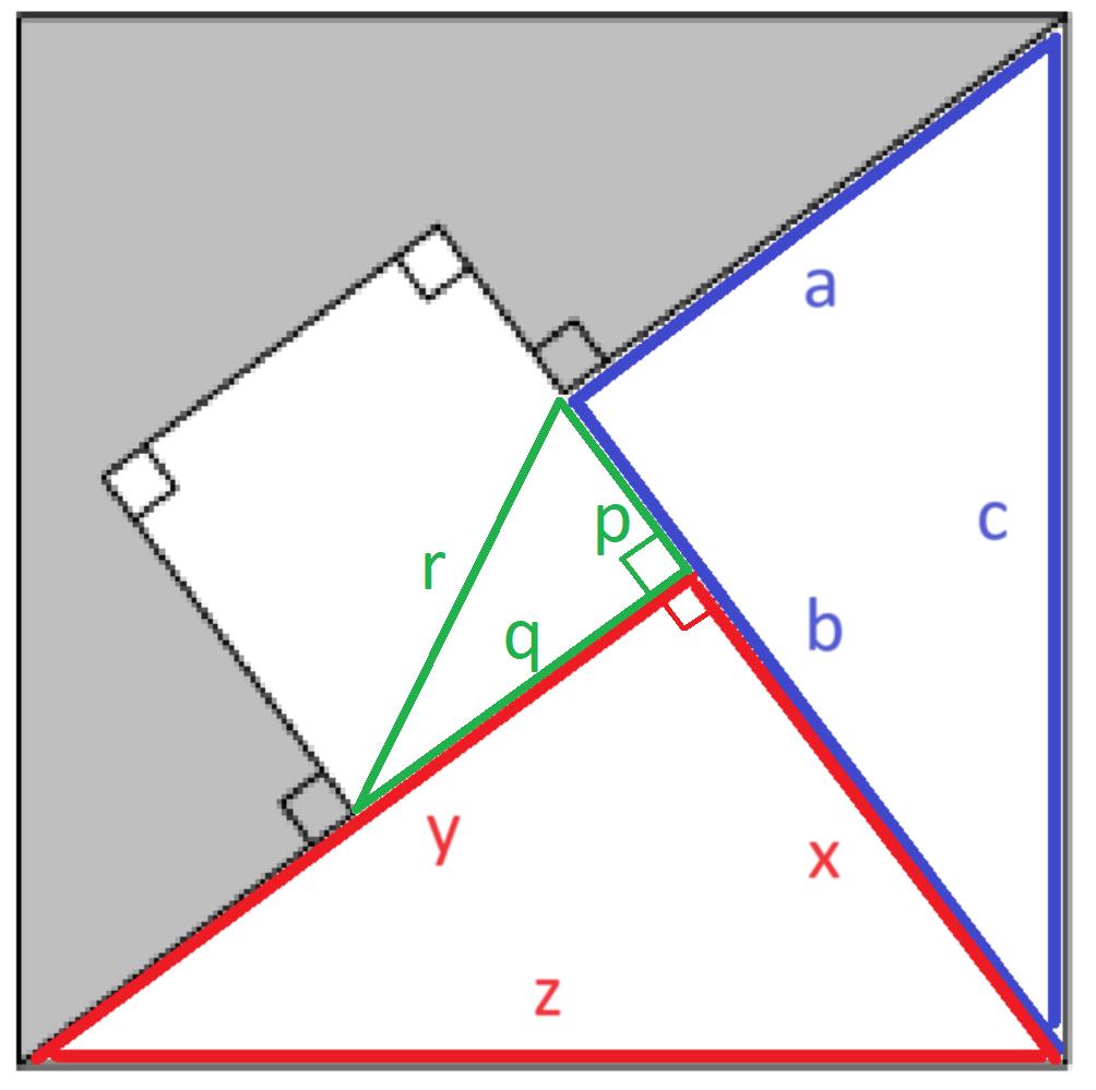 Då bildas den blå triangeln a, c, (p+x) och vi har inte använt b.