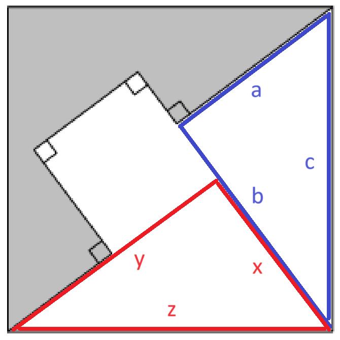 Efter det har man två trianglar med kända sidor och en liten kvadrat som vi också vet sidlängden av.