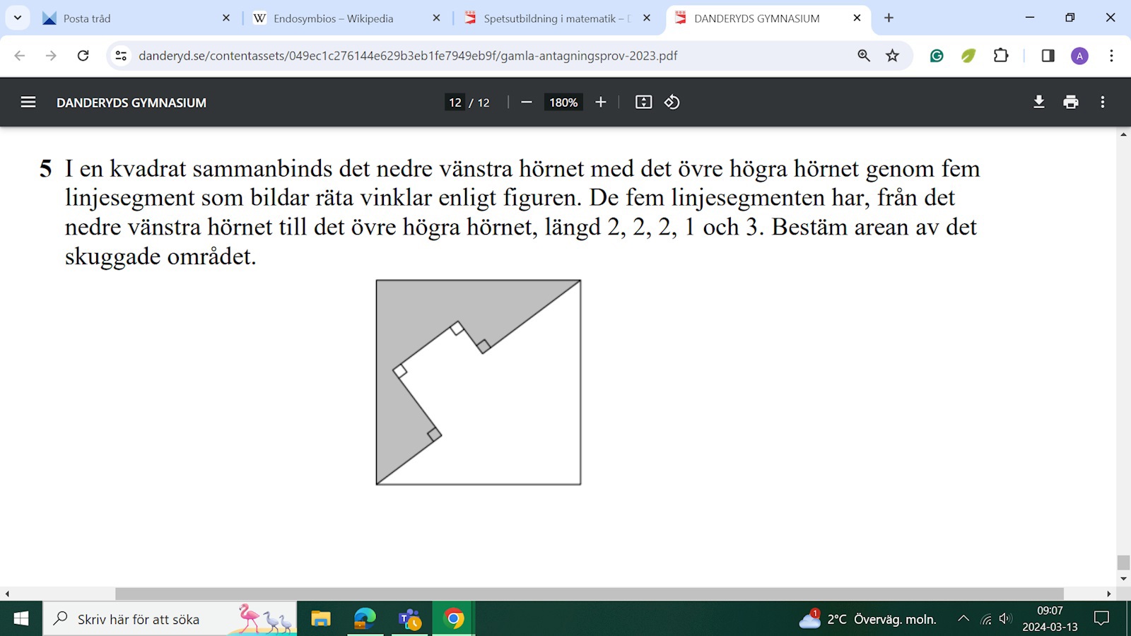 Uppgiften är för övrigt från Danderyds gymnasium som antagningsprov för spetsmatte 2023. Den skall alltså bjuda visst motstånd.