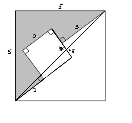 Båda summorna blir kvadratsidan 5 och ekvationssystemet ger a=8/5 och b= 6/5.