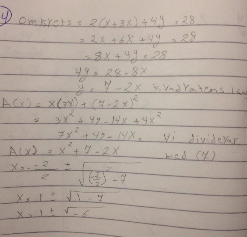 3-Bestäm rektangelns bredd x så att arean A blir så liten så möjligt.