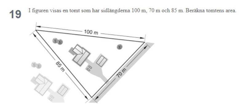 Hur ska man göra, för jag testade mig fram och fick fram 3 olika svar på arean beroende på vilken vinkel jag använde i mina beräkningar, då jag använde vinkeln längst till vänster i areasatsen fick jag ungefär 2000m2, med den längst till höger fick jag 3100m2 och den längst ner får jag 2900m2, vilken är rätt? Bör de alla ge samma svar? Hur vet man vilken det är man ska använda i areasatsen?