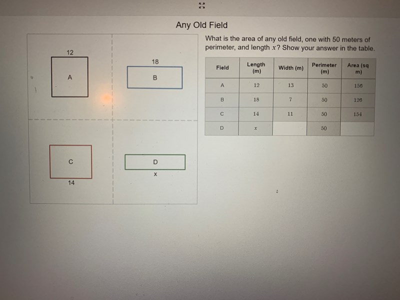 - bredden (width), dvs y. Skriv ett uttryck för denna som enbart innehåller x och siffror.