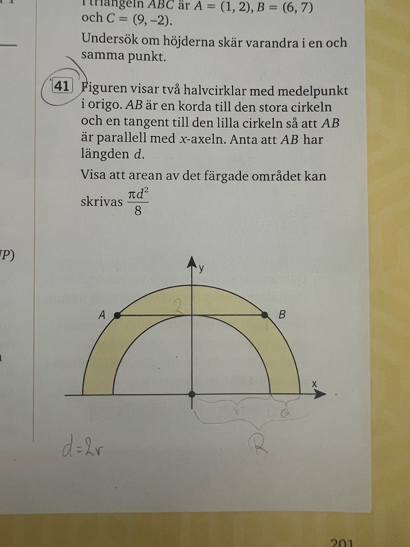 Matematik / Matte 2 / Logik och geometri 1 svar 92 visningar skolbuss behöver inte mer hjälp Avmarkera skolbuss 80 Postad: 21 maj 2024 17:39 Arean av färgade området hur ska denna lösas? Trinity2 Online 4014 Postad: 21 maj 2024 18:03 Användare skriver Svara Du behöver Logga in eller Bli medlem först! Avbryt