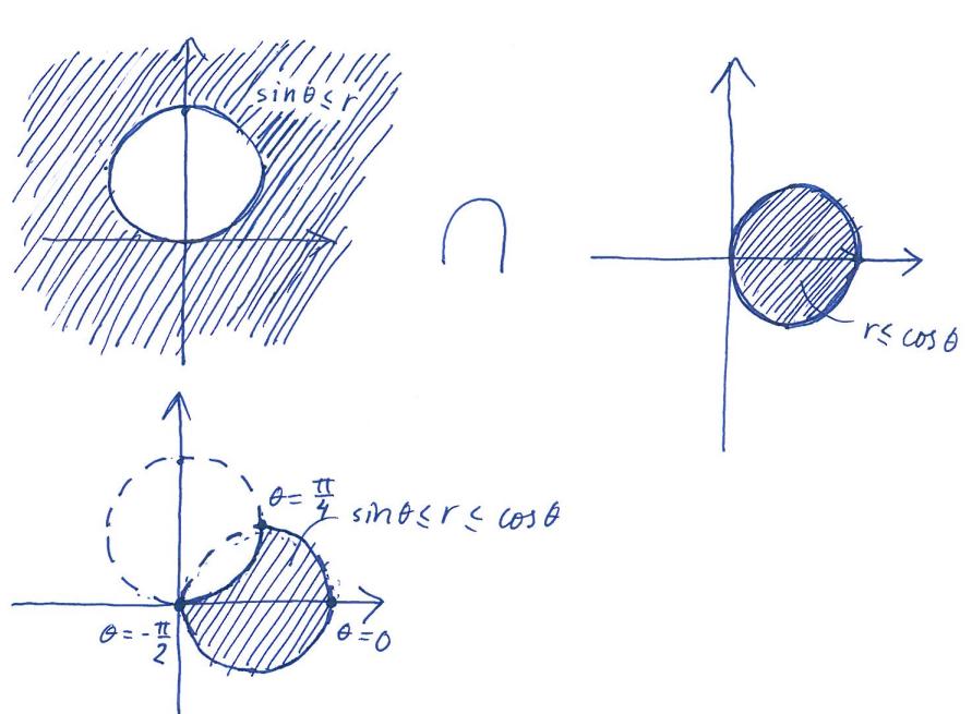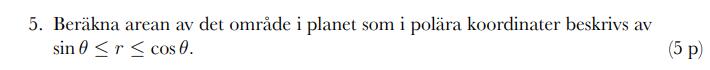 Arean av området i polära koordinater sin(t) < r < cos(t)