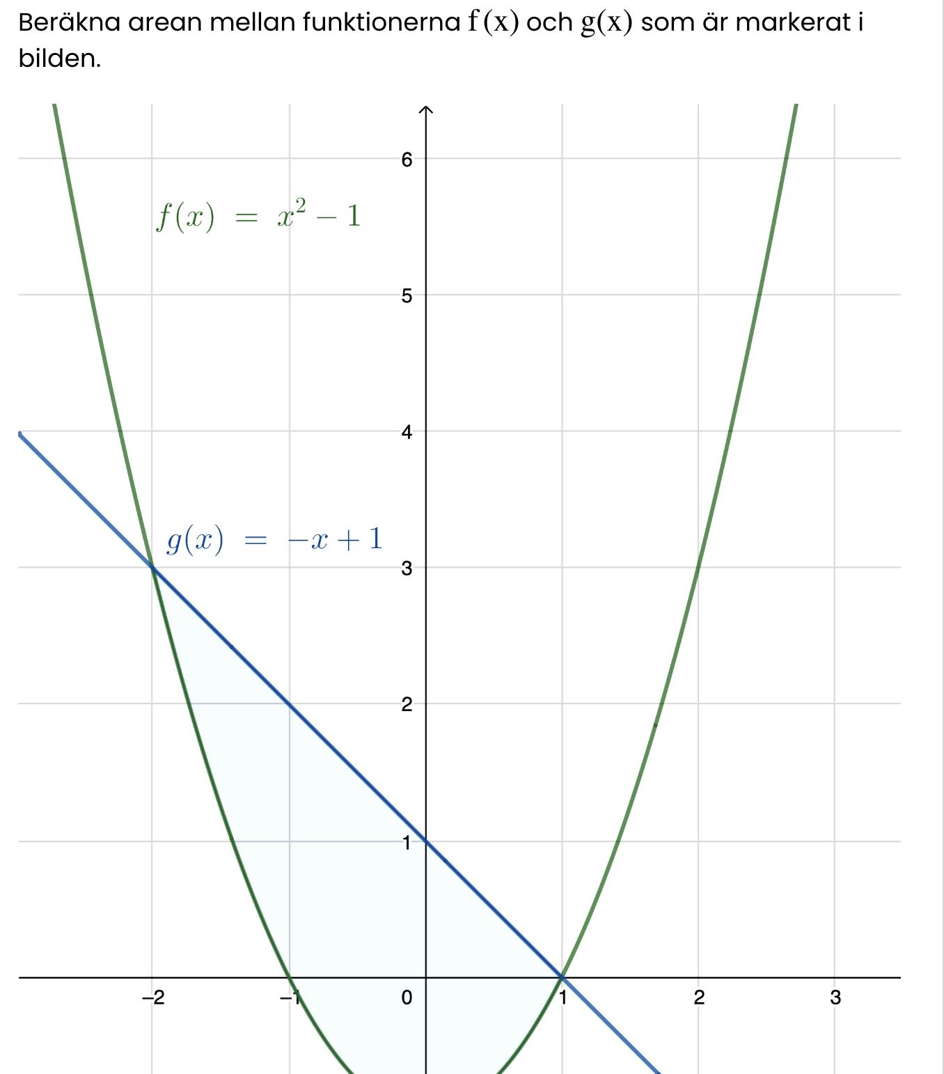 2. Ställer upp genom att ta g(x) - f(x) eftersom g(x) ligger ovanför.