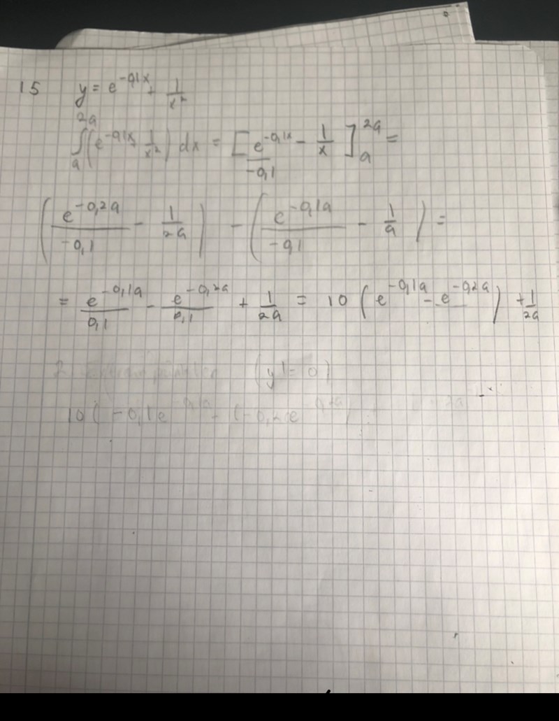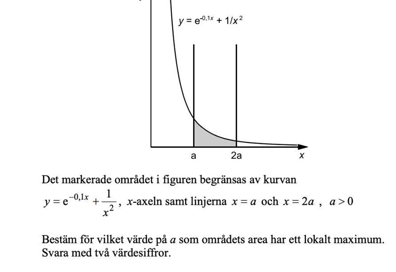 Smaragdalena skrev:Du har beräknat ett uttryck för arean under kurvan från x = a till x = 2a, eller hur?