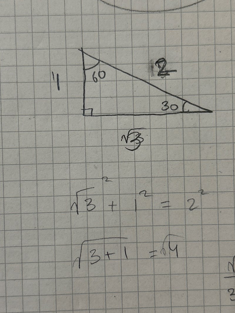 du har insett att vi har en halv liksidig triangel och känner till förhållandet mellan sidorna.