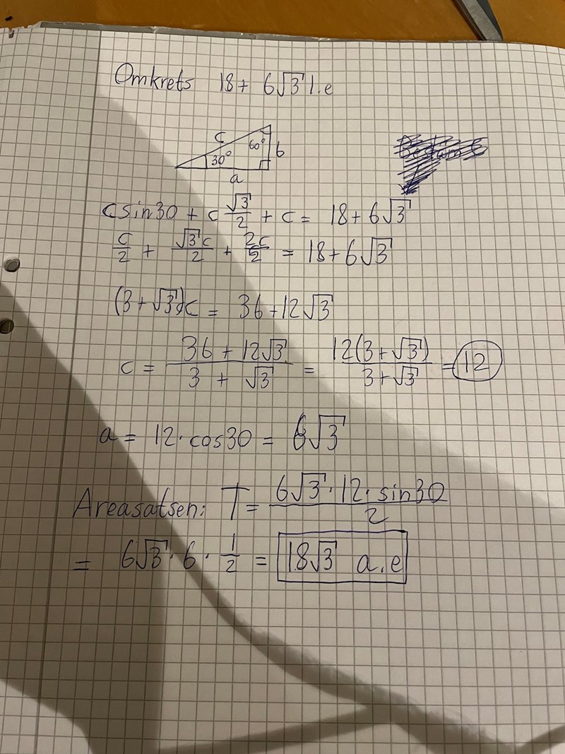 Tips: definiera alla sidor med endast hypotenusan som variabel och addera ihop dom.