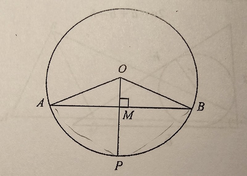 OP är en radie, ingen korda. Men förläng OP till diametern (som är en korda).