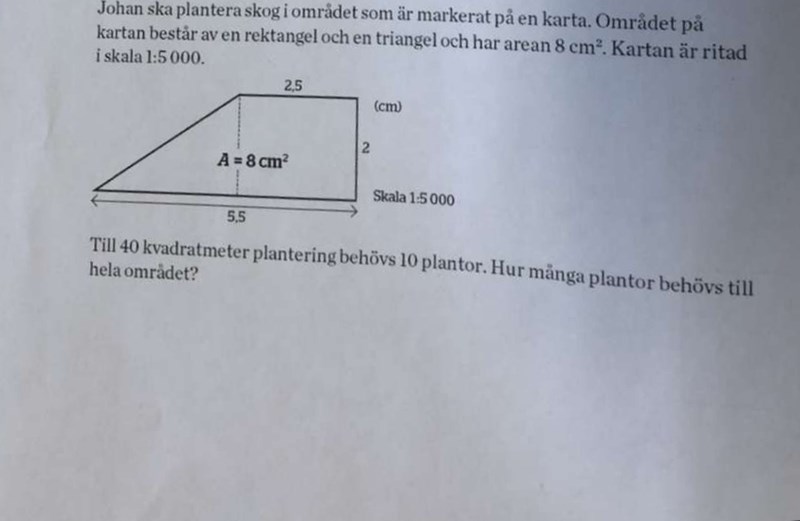 ska jag räkna areaskala dvs (1:5000)upphöjt till 2 sedan multiplicera det med 8cm2?