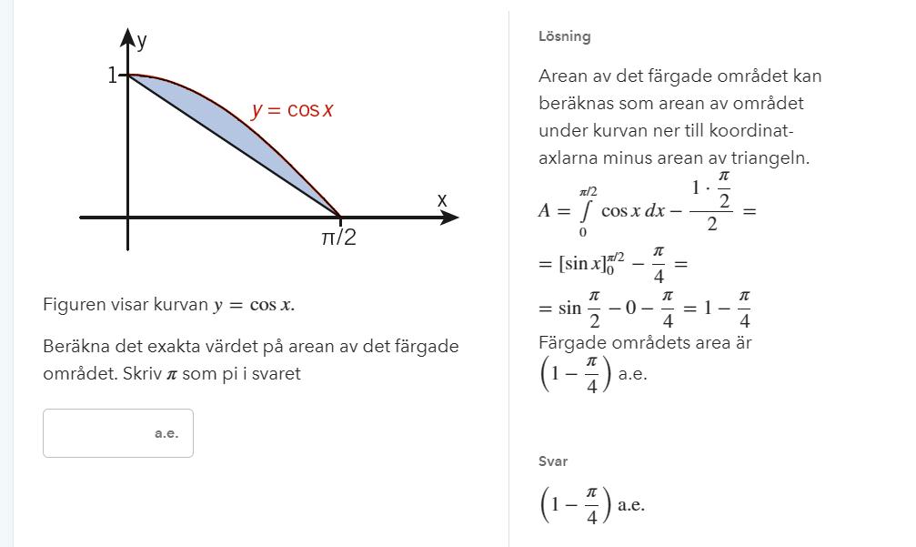 De beräknar sedan arean under och tar bort arean av triangeln.