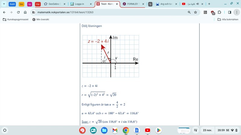 Åhh fattar principen, men här då. Förstår hur de tänker men om jag ska lägga till minustecknet dvs tan v= 4/-2 så får jag v=-63 grader och då om jag tar +360 så får jag 296,56 grader men de har fått 116 garder