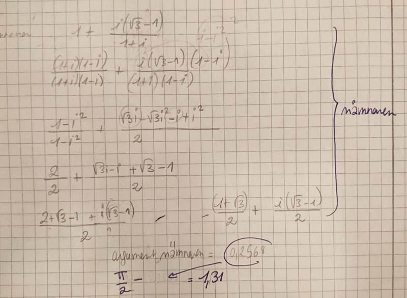 Bestäm arg i1+i(3-1)1+i, säger matteböken.