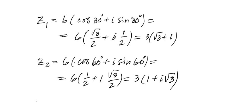 Jag ritade upp en koordinatsystem och markerade att ifall det var en triangel skulle hypotenusan bli absolutbeloppet dvs. |z|. Sedan ritade jag två trianglar åt sidan ena med vinkeln 30° och andra med 60° och tänkte att kateterna skulle bli |z|•sinv och |z|•cosv.