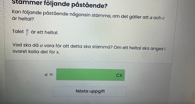 Kan följande påstående någonsin stämma, om det gäller att a och c är heltal?