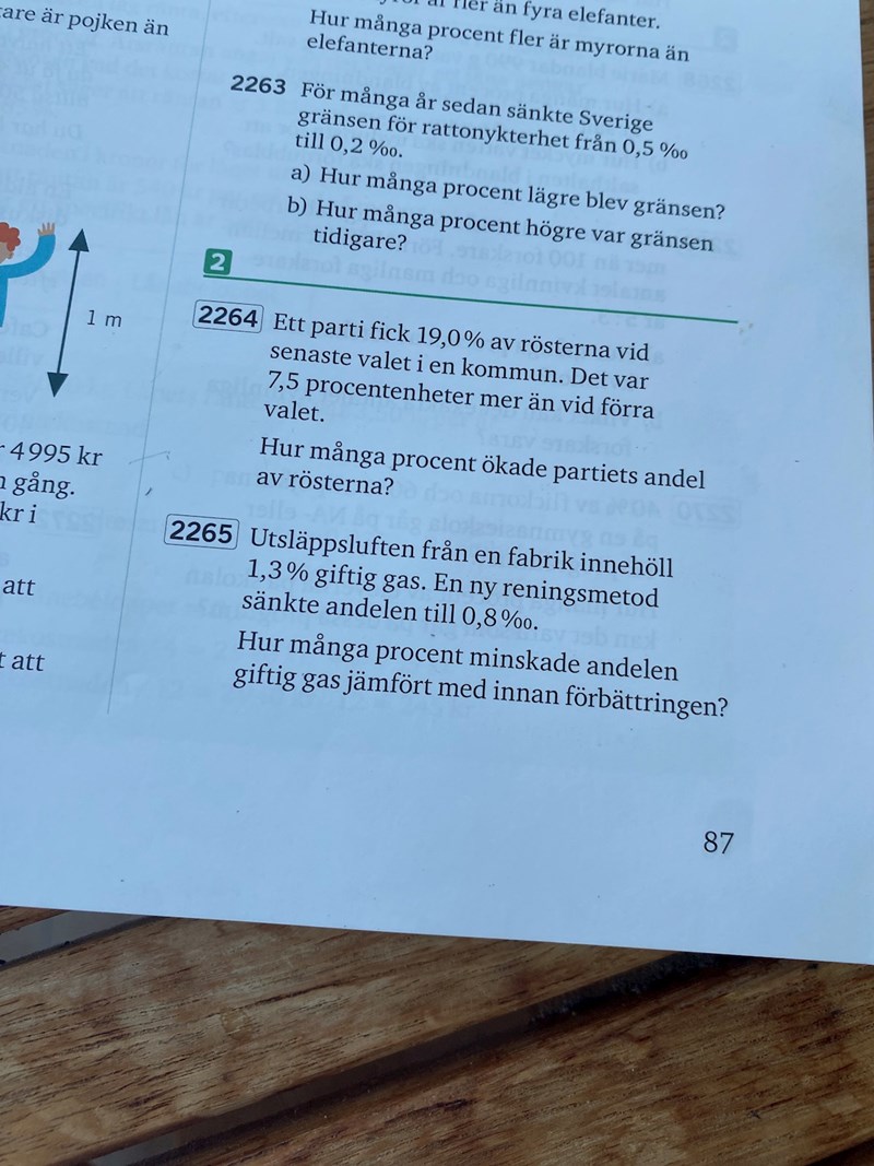Hej! Hur löser man denna? Har försökt med metoden ”skillnad/värdet vi jämför med” men får det till fel svar.upg2265