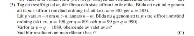 Det är inte fel att svara med en formel så länge man visat att det blir 1089 för t = 10 och att den inte beror på m.