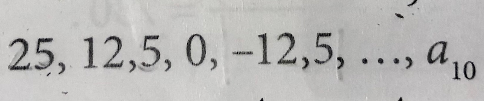 I talföljden : 25,12,5,0,-12,5 ska man hitta termen a10.