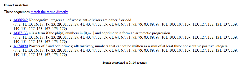 Visa spoiler Att det stämmer för primtal är rätt uppenbart då vår lista bara blir 1,2,3,4,,n-11, 2, 3, 4, \dots, n-1. Densamma för tvåpotenser där talet måste vara relativt prima mot alla udda tal och minst ha en faktor 22 med alla jämna tal. Då är det kvar att visa att det inte gäller för några andra tal.