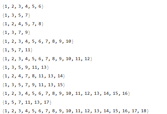 Här är en lista för av mängderna för 7n197 \leq n \leq 19