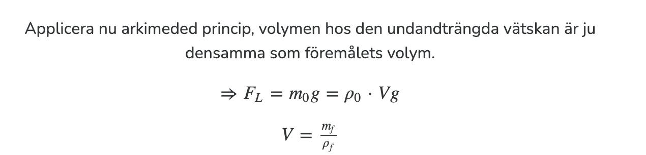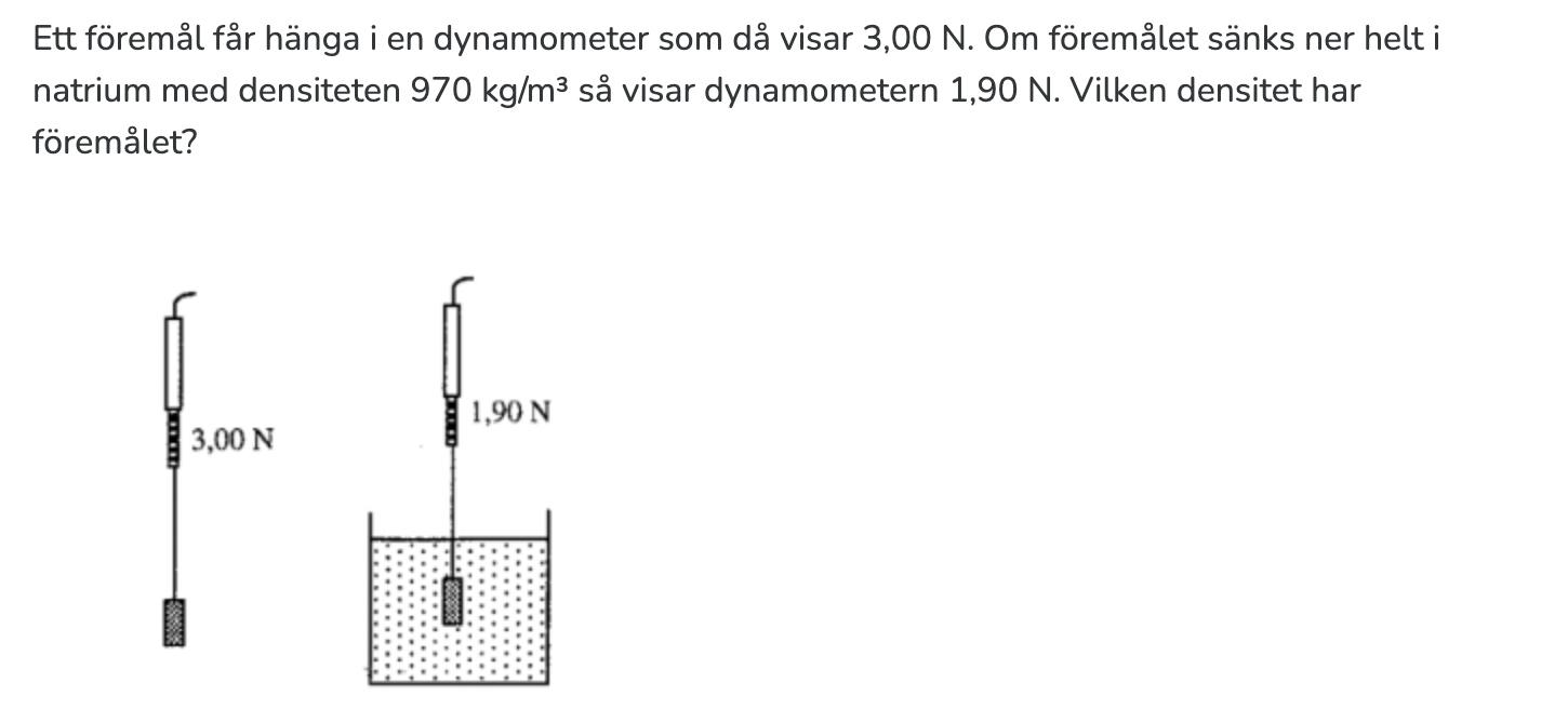 Kan man verkligen gör så som det står ovanför? Att V = mföremål/pföremål? Hur kan densiteten ändras? När jag gjorde uppgiften utgick jag från att det skulle vara densiteten av natrium i nämnaren, men det var fel.