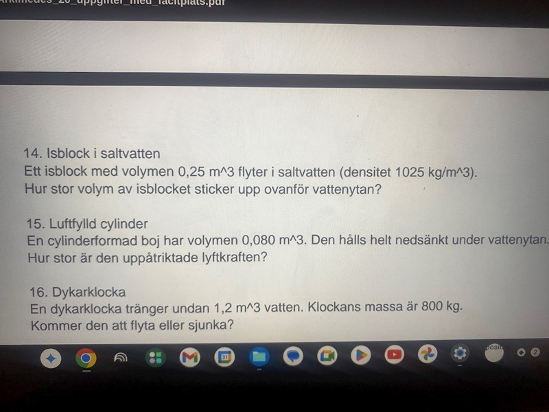 Denna isbit utsätts för en lyftkraft som är .