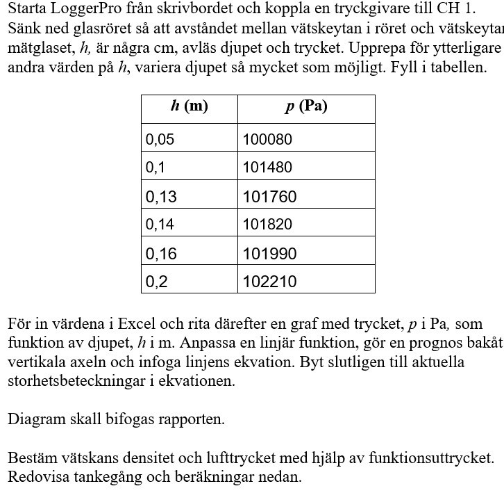 Då jag gjort mätning med h (m) - p (Pa) har jag 5 olika mätresultat