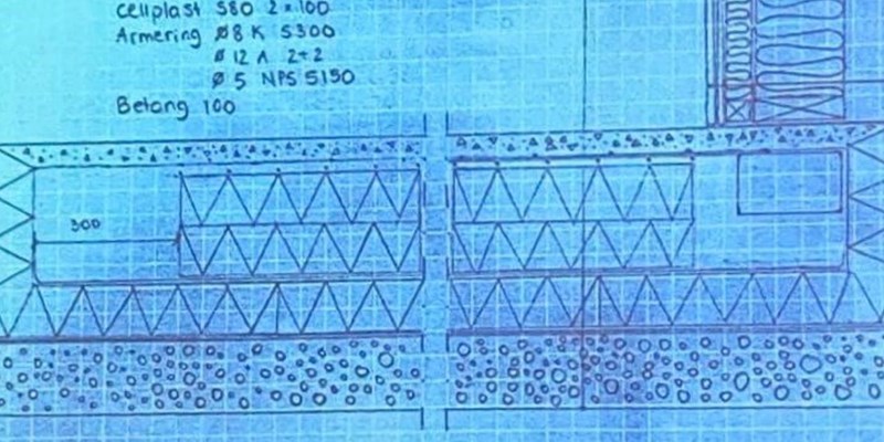 Ritningen består av en grundkonstruktion (platta på mark), jag är osäker på armeringens beteckningar.