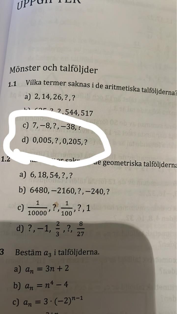 Hej! Hur räknar man ut denna aritmetiska talföljden 0,005,?,?, 0,205. Eftersom man då inte vet differensen?