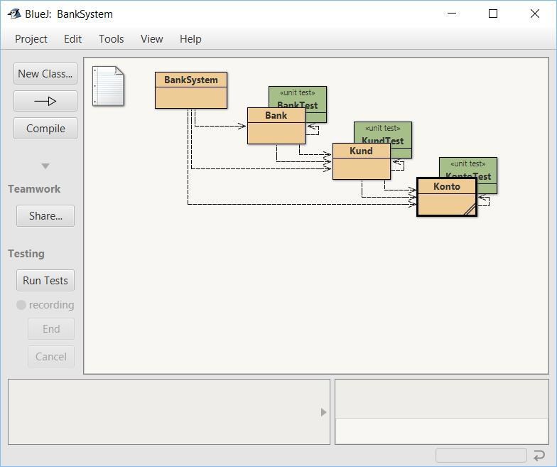Skapade också testklasser för Model. Använder BlueJ för såna här små Java-hack och där ser det ut så här: