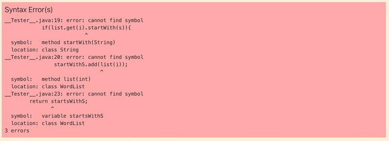 AlvinB skrev:Jag vet inte riktigt hur rättningen fungerar, men du skulle döpa metoden till startsWith. Du har döpt den till startsWithString.
