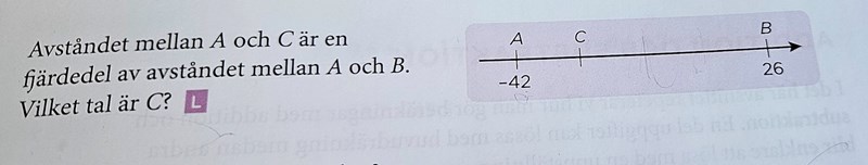Sedan var det väsentliga att vi alltså ville ha punkten som var 17 större än punkten A, så vi får ta (-42)+17 för att få fram svaret. Detta borde ge -25.